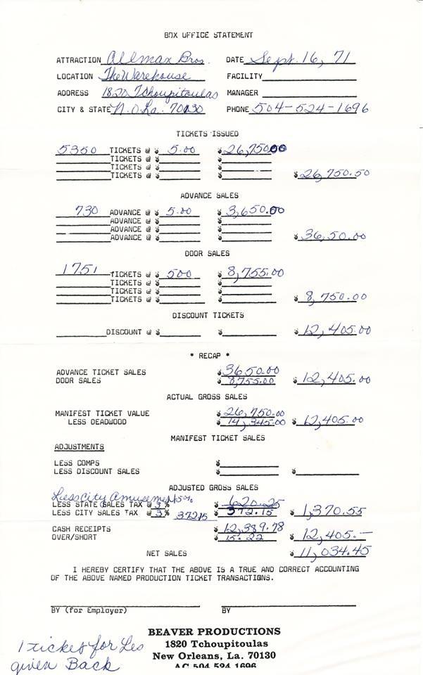 Link to a box office statement from the show: https://www.duaneallman.info/images/boxofficestatement09161971.jpg